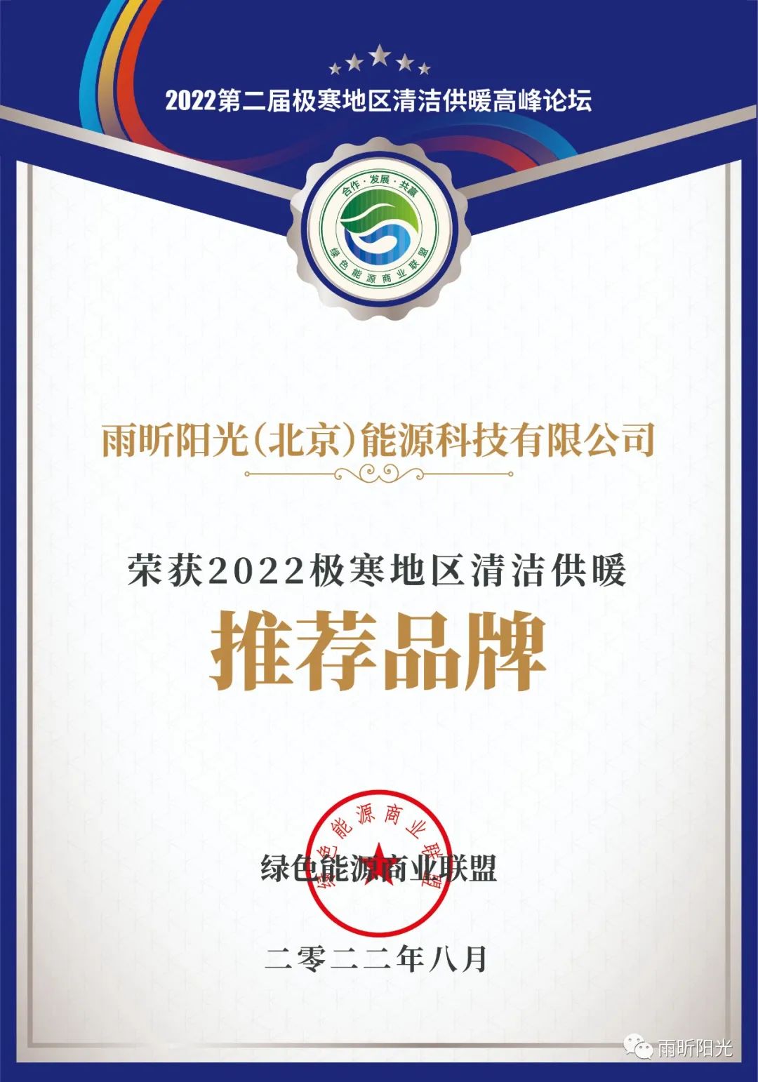 雨昕陽光帶來的多能互補(bǔ)解決方案在2022第二屆極寒地區(qū)清潔供暖高峰論壇大受好評,吸引眾多東北大商前來洽談合作,并獲評“極寒地區(qū)清潔供暖推薦品牌”。