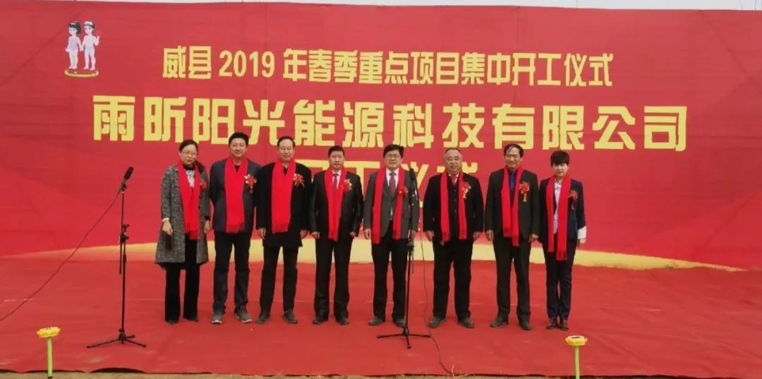2019年2月22日上午,雨昕陽光能源科技有限公司項目奠基儀式于河省邢臺市威縣開發(fā)區(qū)新項目建設基地隆重舉行,雨昕陽光公司董事長孫培雨,總經理孫欽帥,以及公司行政部、財務部、工程部、生產部、項目部等相關負責人參加了本次儀式,同時蒞臨奠基儀式的嘉賓有威縣縣委、縣政府、侯貫鎮(zhèn)政府、縣直各單位的領導。