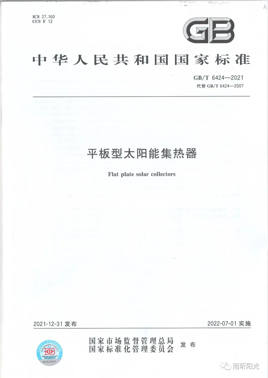 集熱器》已于2021年12月31日發(fā)布,將于2022年7月1日實施。