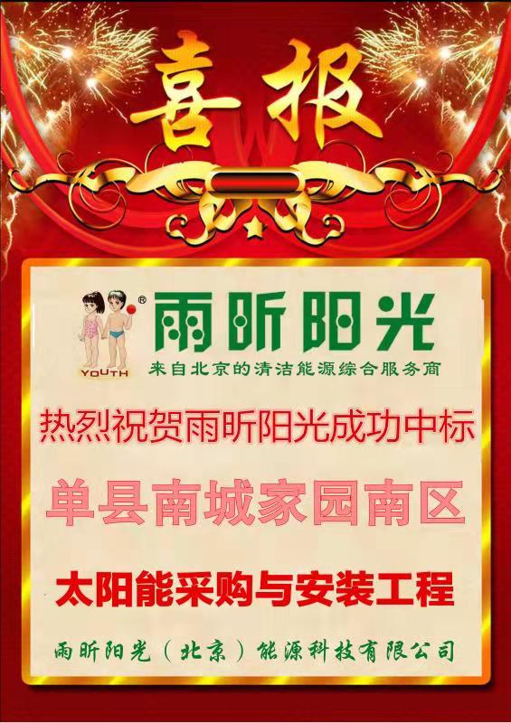 雨昕陽(yáng)光中標(biāo)單縣南城家園南區(qū)太陽(yáng)能采購(gòu)與安裝工程